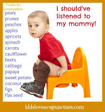 Look into your child's diet - check if she/he is consuming enough of fiber. Introduce more vegetables, fruits, whole grain breads and cereals, and make sure he/she drinks enough fluids. Also, encourage your child to take part in physical activities as this help relieve constipation. For constipated infants, offer water between feeds - do not dilute infant formula.